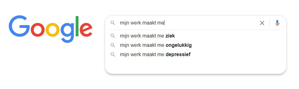 Wanneer je in Google een zin begint te typen om iets op te zoeken, dan krijg je enkele automatische suggesties op basis van de woorden waarop het vaakst gezocht wordt. Jammer genoeg is de realiteit niet zo rooskleurig wanneer we het hebben over hoe mensen zich voelen op hun werk.